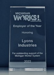 Lyons Industries has won the 2022 Michigan Works! Association Employer of the Year Award! We know that we would not have enjoyed the level of success we’ve had without our hard-working employees, which is why we take extra efforts to return the favor and go the extra mile to set them up for success. You can read more about this award by clicking the button provided. Please contact us for more information about how you can join our hard-working team!